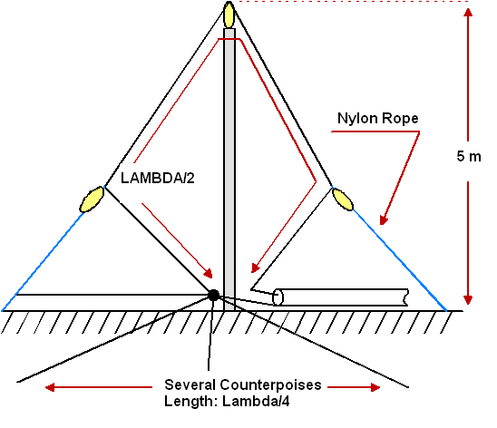 mast in height of near 15 meters. The antenna is fed by 75- Ohm