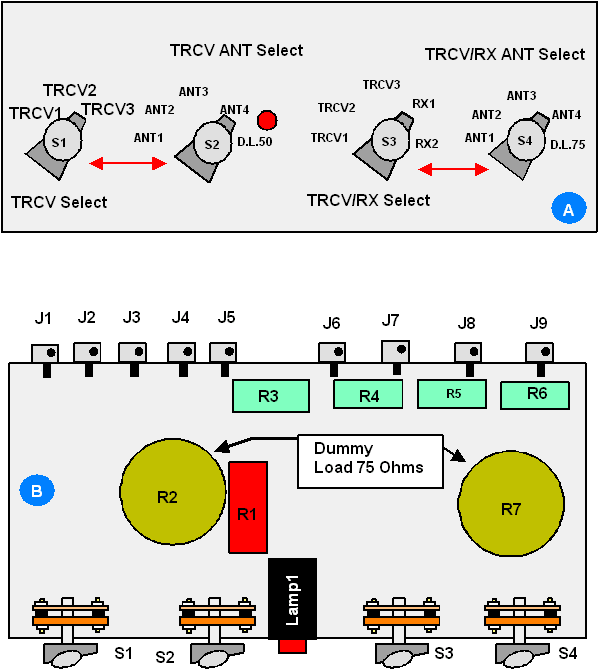 transceiver. Switch S2 selects an antenna for use with this transceiver.