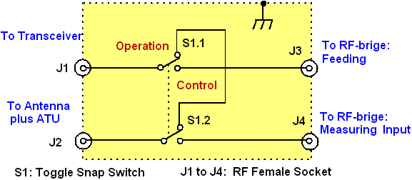 RF power from transceiver goes to the RF-bridge and ATU with antenna