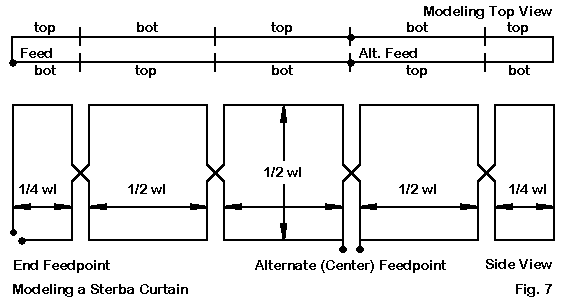 Figure 7 shows a side view of a Sterba curtain, similar to the typical sketch shown in many an antenna manual. The twisted vertical line pairs seem to beg for transmission line treatment. If we contemplate using physical lines, we often bog down in the thought of trying to keep them at a constant spacing and still effecting the "half-twist."